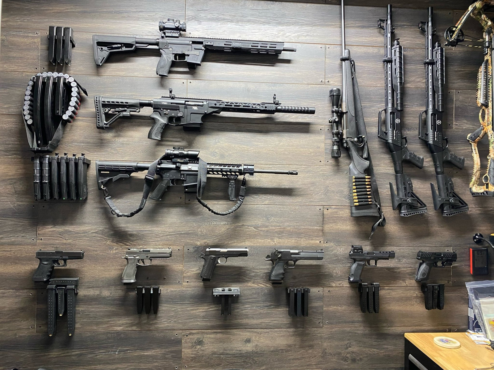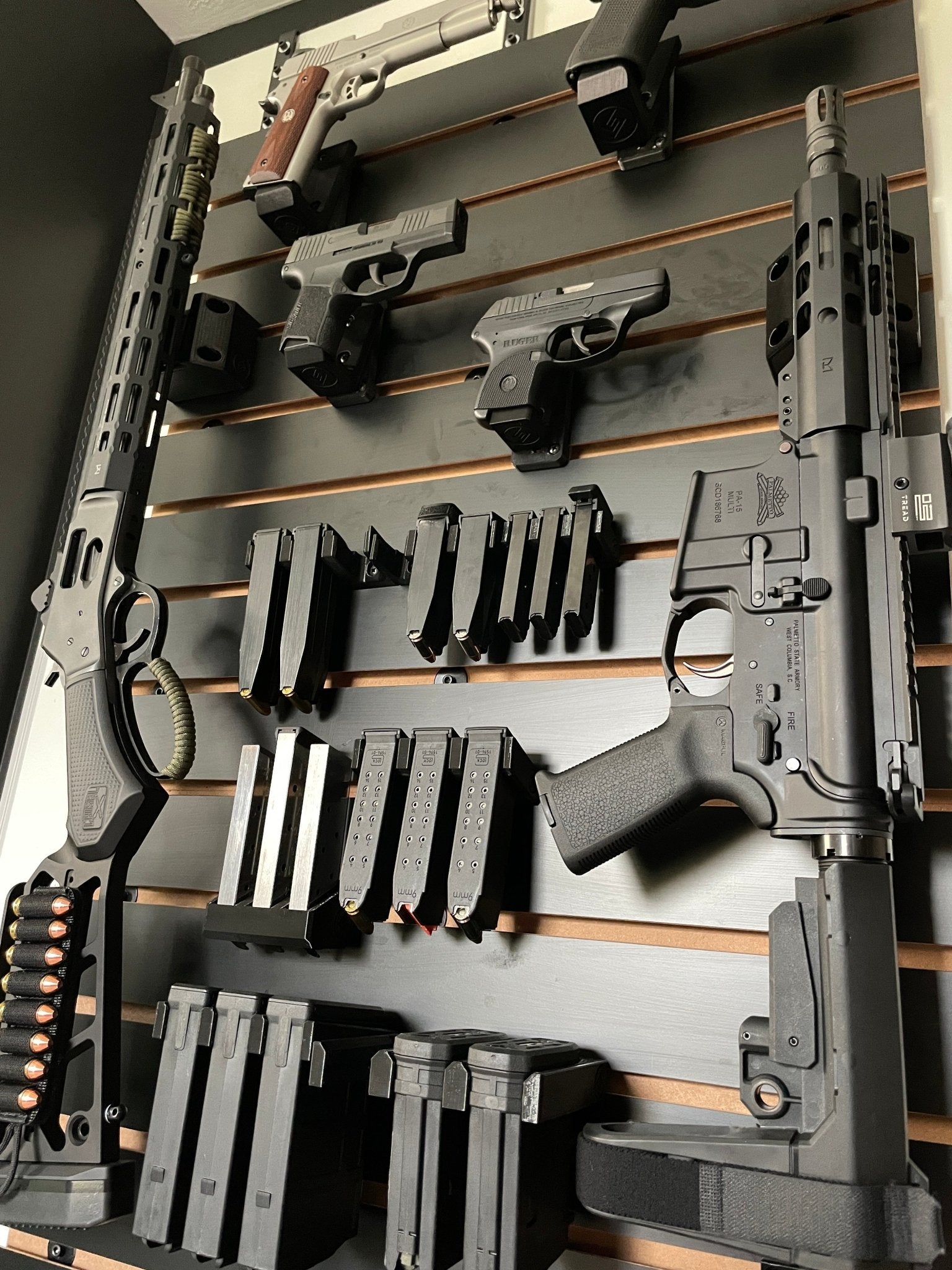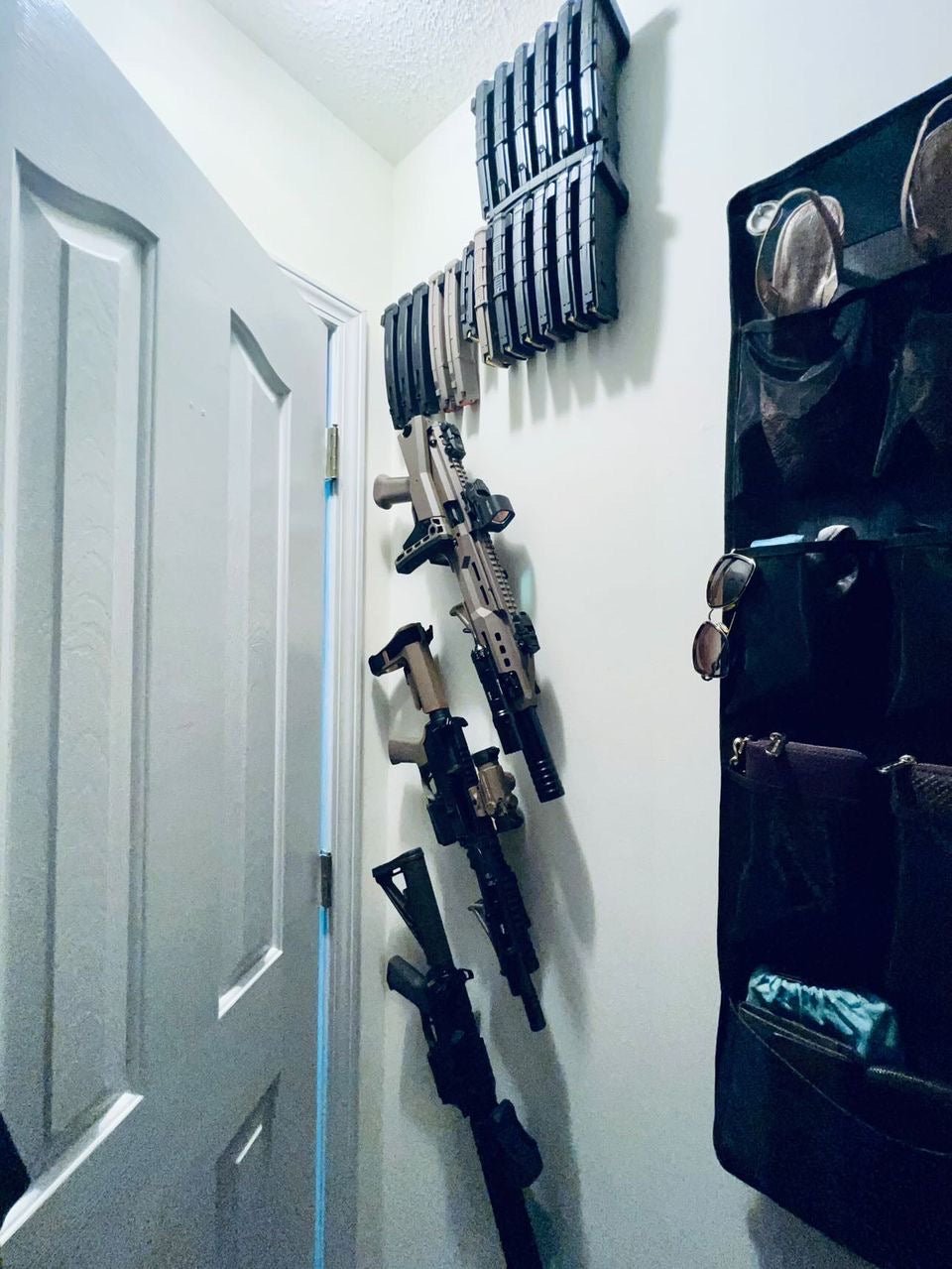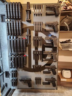 A gun rack or storage wall in your closet is a great solution for firearm storage! Many gun owners don't realize that you can build a custom firearm storage solution in most home closets, and with a few modifications, it can be just as safe as a gun cabinet, with the added benefit of being hidden in plain sight. You don't need a vault door or panic room to safely store your gun collection like you see in the movies!