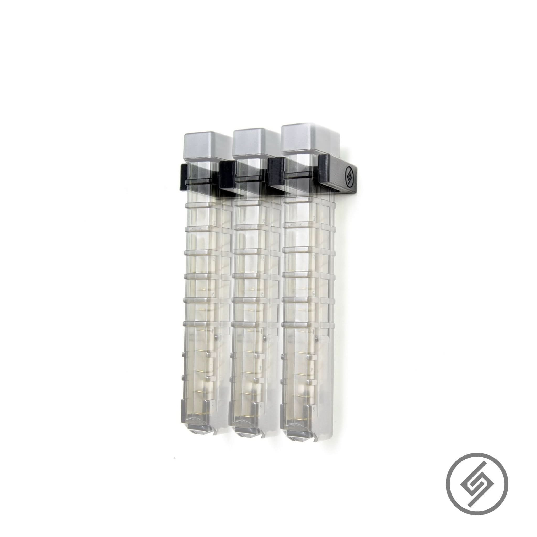 Keep your Stribog 9mm magazines organized and ready with our precision-fit wall mount, designed to hold your factory or aftermarket mags cleanly and securely. Perfect for tactical walls, gun safes, or range setups, this mount offers quick access and dependable retention. Proudly made in the USA for PCC owners who prioritize efficiency and performance.