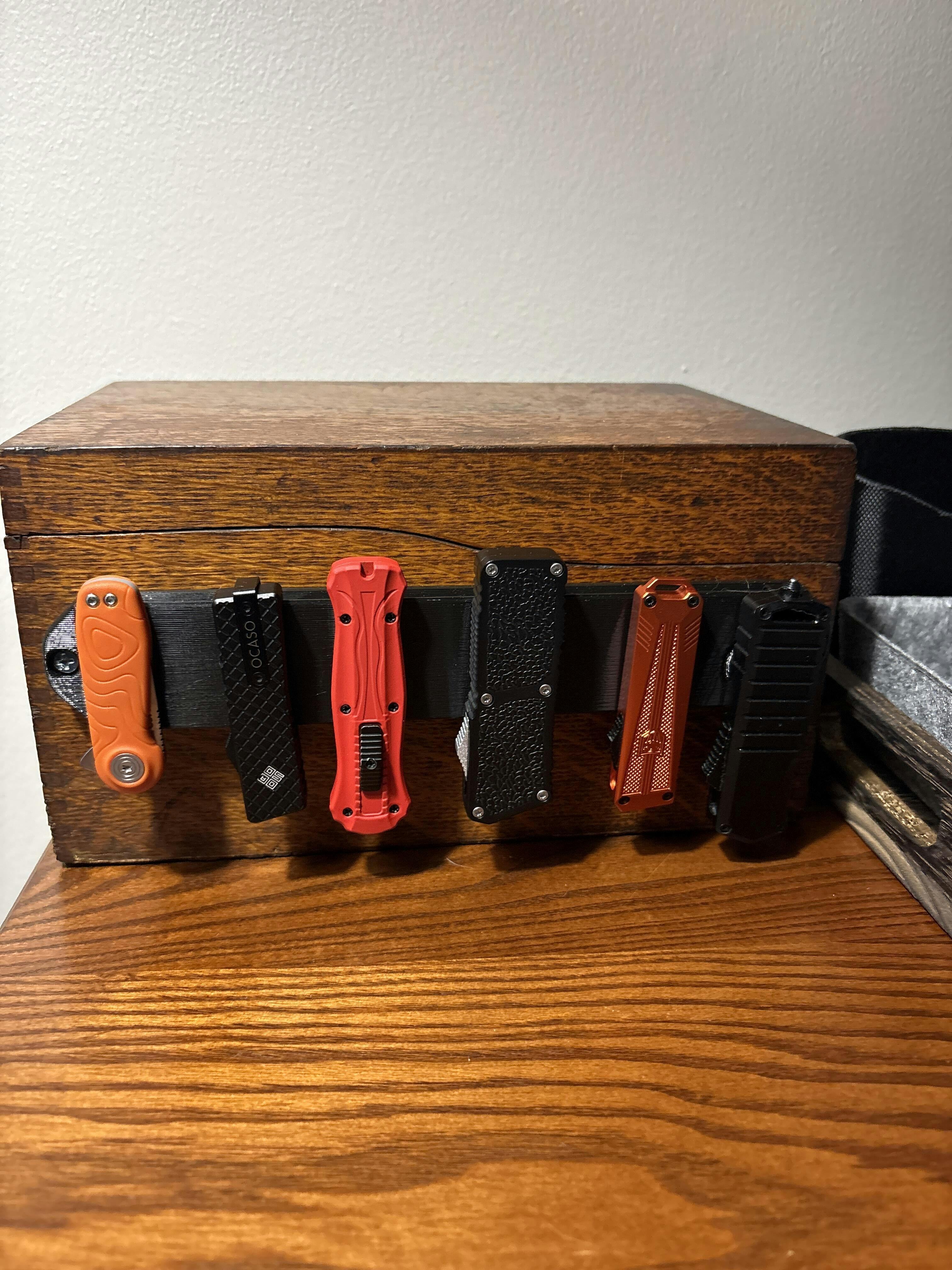 My wife is always upset that my knives are laying around when i come home from work. Now i have a place to put them and it leaves them easy to access and remember where they are. Great idea!