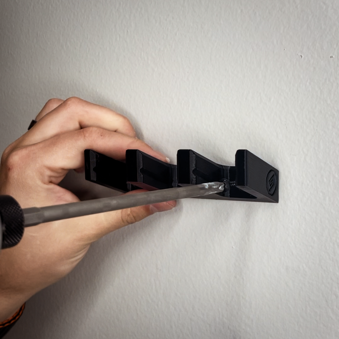 Align the mount with your holes, and install the two screws. There is no need to over-tighten the screws past the point where they are snug - this may strip something and actually make the anchor point weaker.